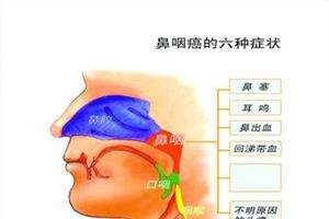 患者由于鼻咽癌早期没有明显的症状,因而不容易被发现。随着肿瘤的发展,肿瘤的黏膜发生溃破、感染,继而出现涕血等症状;肿瘤阻塞后鼻孔和咽鼓管口时,就会出现鼻塞、耳鸣、听力下降和头痛等症状。鼻咽癌的恶性度较高,很容易出现淋巴结转移,且常常由于肿瘤向鼻咽黏膜下发展,鼻咽部也许没有明显的肿瘤,但颈部已有肿块。